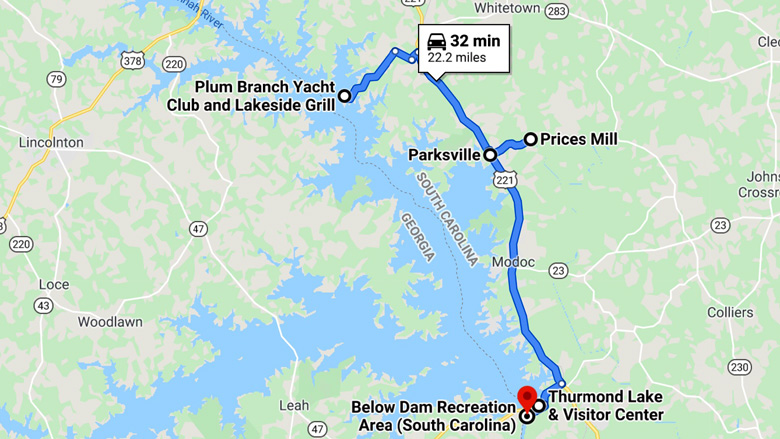 - Drove to the J. Strom Thurmond Visitors Center. The Visitors Center was closed. - The Below Dam Recreation Area was open so we walked around the area. - We stopped to see the US Army Corps of Engineers Modoc Campground. - While returning to Plum Branch Yacht Club we stopped to see Parksville, SC. - From there we followed a sign to the Price's Mill. We found an old mill beside a stream. |