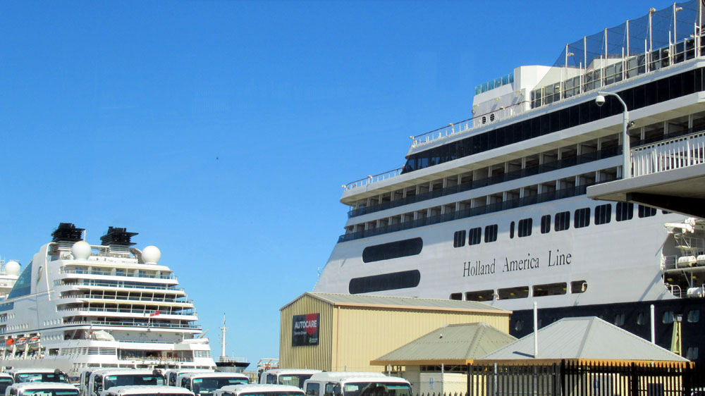 View of the Amsterdam and Pacific Princess in port